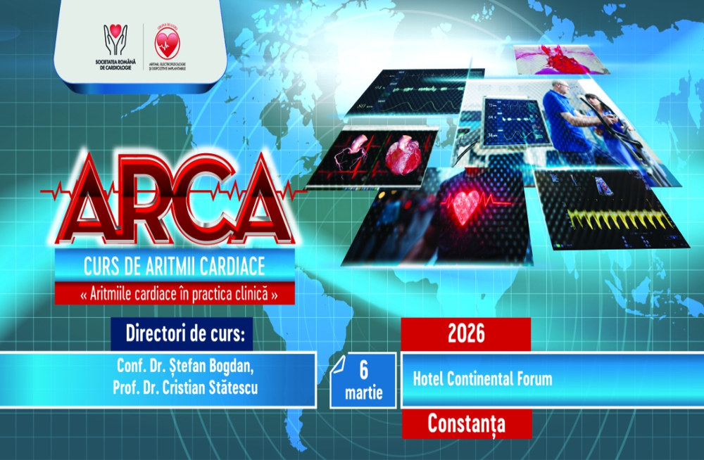 Avem deosebita plăcere de a vă invita la o nouă ediție a cursului de aritmii cardiace ARCA, ce va avea loc pe 6 martie 2026, cu tema centrală „Aritmii cadiace în practica clinică” – o provocare majoră în practica medicală actuală.